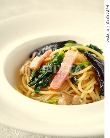 茄子ときのこの和風パスタ (縦位置ハイアングル)