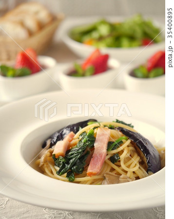 ナスとキノコのパスタ ランチ画像 (縦位置)