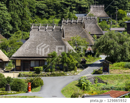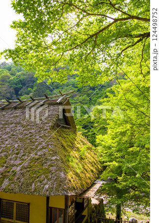 古民家の庭先 茅葺屋根の日本家屋 小谷戸の里