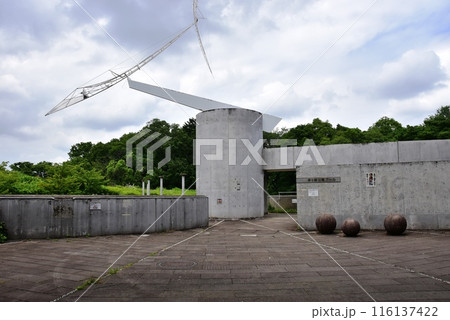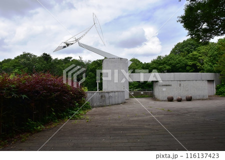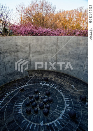 河津桜と港北ニュータウン・茅ヶ崎公園のオブジェ