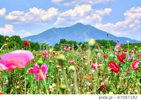 6月12日正午茨城県下妻市小貝川フラワーパークよりポピーと筑波山