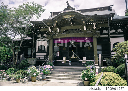 潮来市二本松寺の本堂と紫陽花