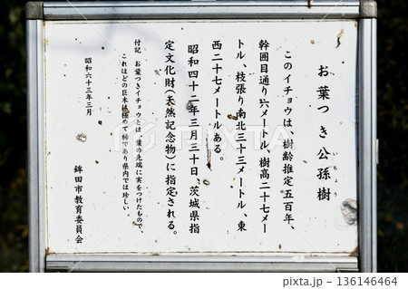 【鉾田市 茨城県指定天然記念物 大光寺「照明院のお葉付イチョウ」の解説板】