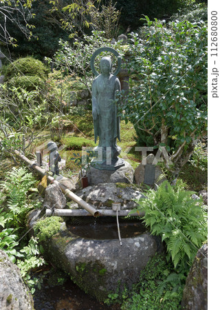 実光院 手水鉢と観音像 京都市左京区大原