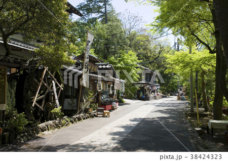 京都市 大原三千院御殿門前参道(大原女の小径)の新緑と茶店