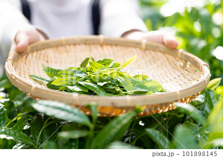 茶 新芽 茶摘み 茶葉