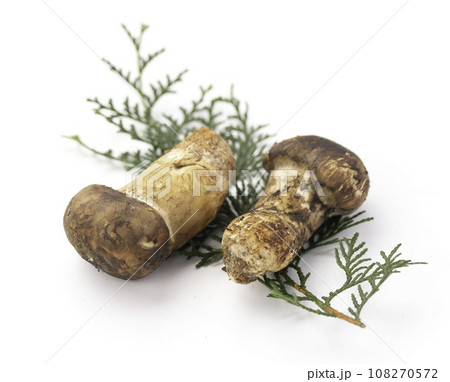 秋の味覚 高級食材の松茸 きのこ 和風イメージ まつたけ 白バック