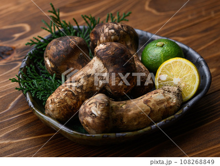 秋の味覚 高級食材の松茸 きのこ 和風イメージ まつたけ