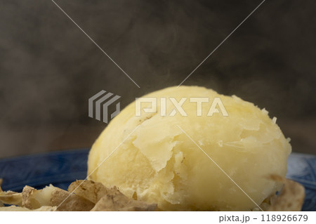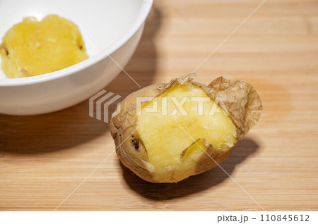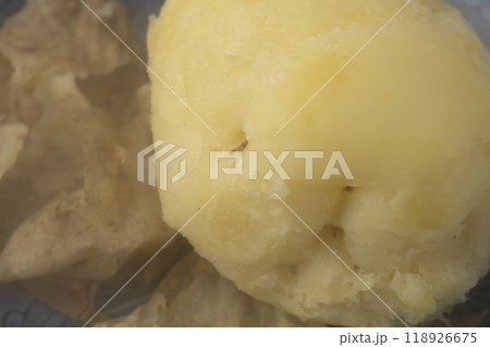 じゃがいも 蒸したて皮をむいたじゃがいも