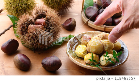 秋の味覚 おいしい茹で栗 秋イメージ