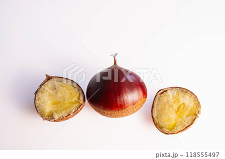 秋の味覚 栗 ( 白背景 )