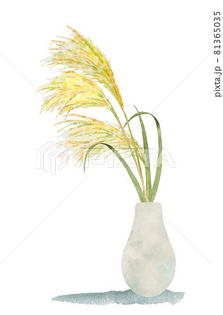花瓶に入ったススキ 水彩イラスト