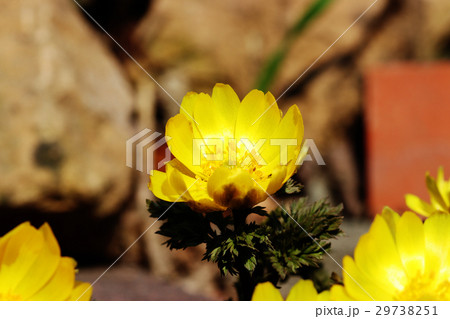 木の隙間から黄色い綺麗な花を咲かせる野花 たんぽぽ
