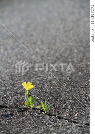 アスファルトのひび割れに咲いた可愛らしい黄色の草花