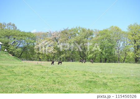 岩手県岩手山麓相野沢牧場の放牧風景 宮沢賢治の童話の舞台