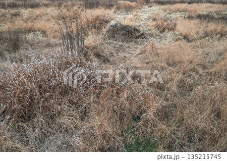 Close-up on the yellowed grass in the fall.