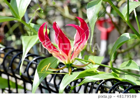 三鷹中原に咲く赤いネリネの花