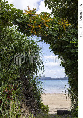 白い砂浜と花咲くパーゴラ