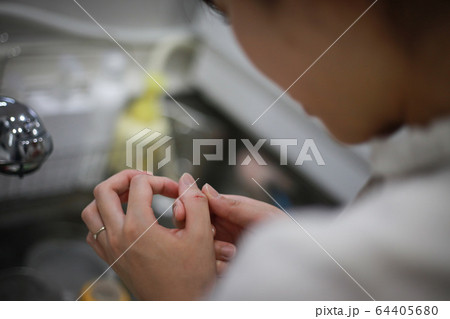 手の荒れやあかぎれ乾燥などに悩む女性のクローズアップ