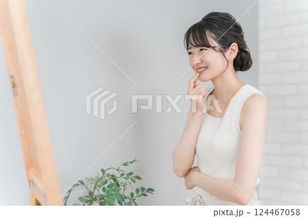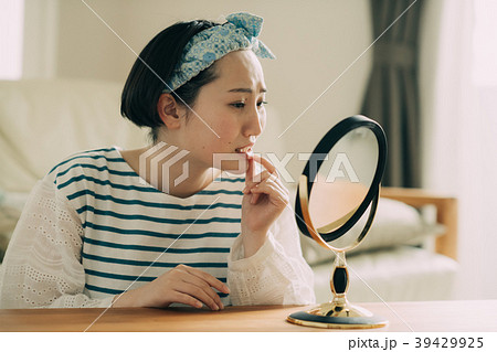 荒れた唇を気にする若い女性