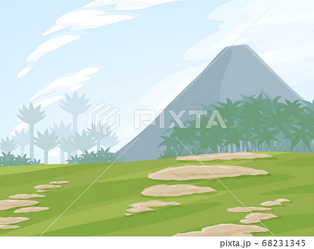 恐竜時代の植物のある風景_ジュラ紀白亜紀_背景イラスト