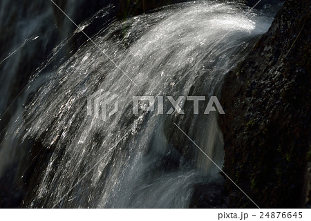 備前市三石にある深谷の滝、みたにの滝、備前十景の一つ、人里離れた山の中に滝から流れ落ちる水の流れ