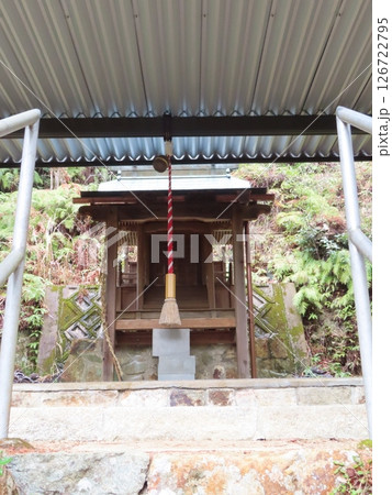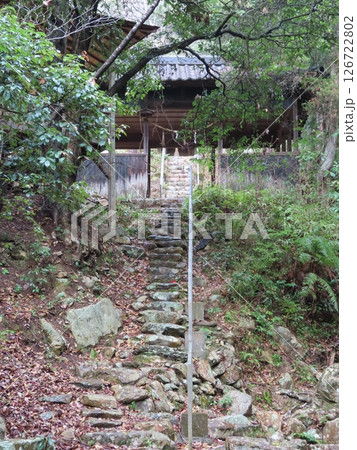 備前市三石にある深谷の滝、みたにの滝の隣の岩場にある神社につ続く石段、備前十景の一つ、