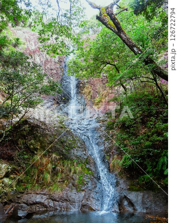 備前市三石にある深谷の滝、みたにの滝、備前十景の一つ、人里離れた山の中に滝から流れ落ちる水の流れ
