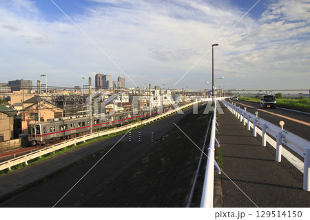 荒川堤防沿いに進む東武スカイツリーライン・新荒川堤防線