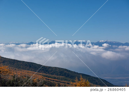 甲府盆地の雲海に浮かぶ南アルプス-赤石岳・荒川岳