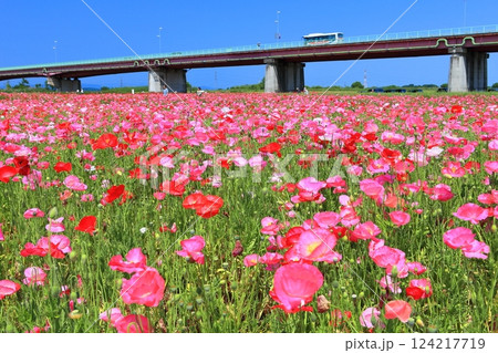 鴻巣市吹上地区の荒川河川敷のポピーの花畑