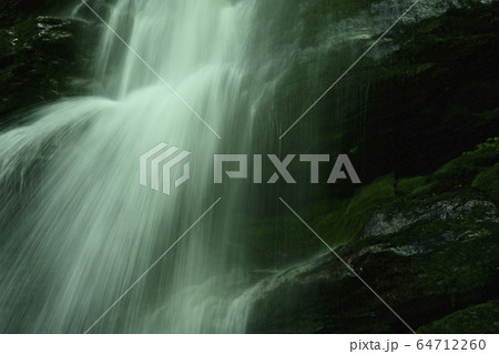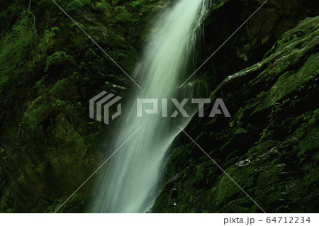 不動滝登山道脇の苔むすささやきの滝