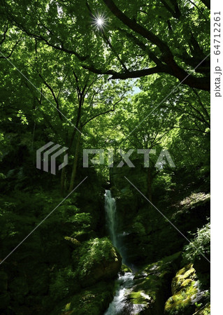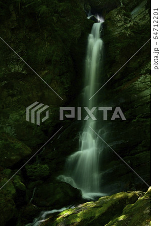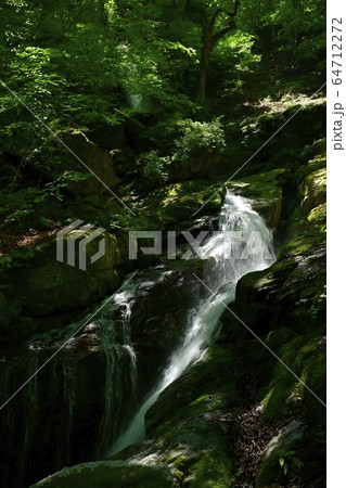 新緑の栃本地区林業人の守護神大除沢不動滝中段