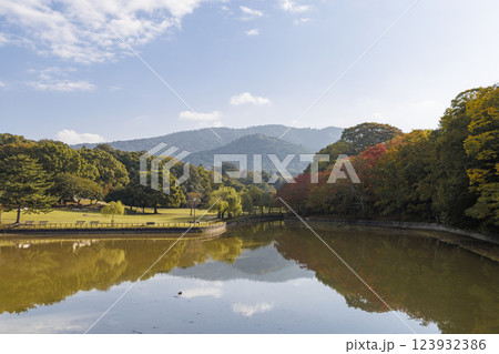 秋の古都奈良 紅葉の奈良公園 荒池園地