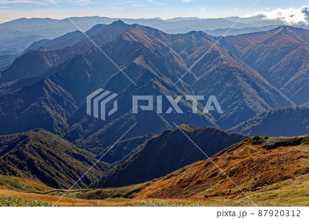 紅葉の越後駒ヶ岳から荒沢岳方面の山並み