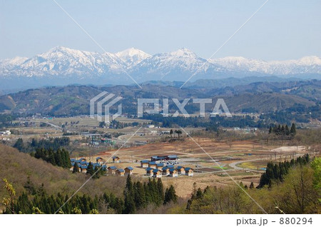 山本山から「おぢやクラインガルテン」と越後三山を望む