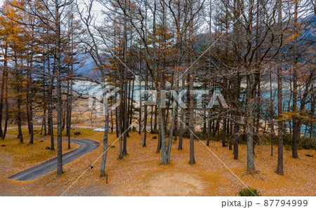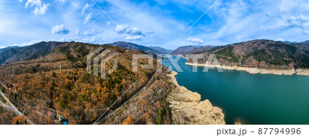 秋の御母衣湖 湖岸 2021年11月撮影 空撮