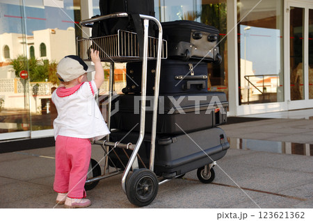 Child and suitcases