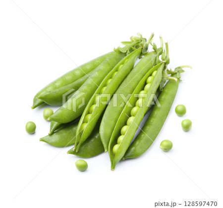 sweet green peas pods on white backgrounds