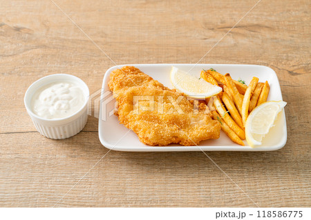 fish and chips - fried fish fillet with potatoes chips