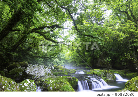 初夏の新緑が美しい菊池渓谷 (熊本県菊池市)