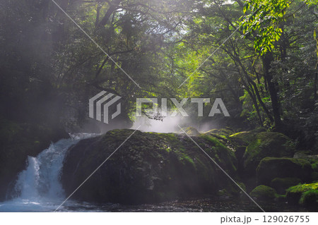早朝の菊池渓谷の美しい風景