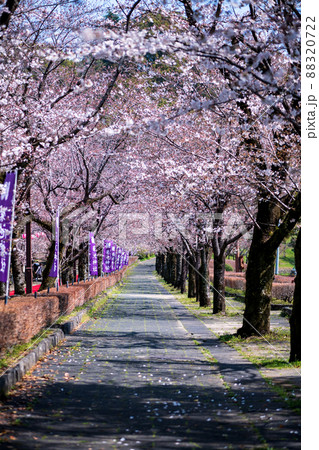 桜祭り風景「菊池神社の参道」鳥居と桜の花