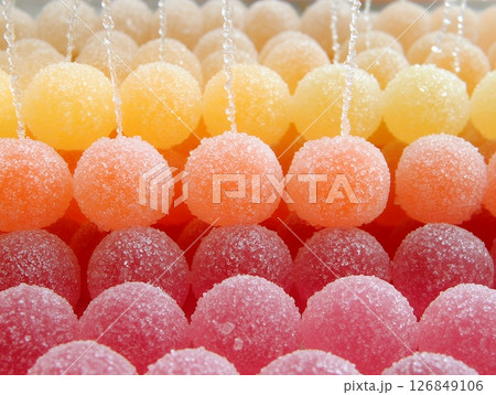 Sweet Sugary Gummy Candy Balls Delicious Treats Colorful Dessert Background red food pink rows jelly