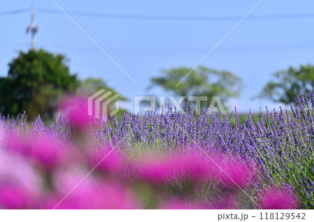 満開のラベンダーと爽やかな夏の空 埼玉県・久喜市・菖蒲町