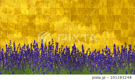 ラベンダーが咲く現代風琳派アートの背景に、雲の光沢を加えて