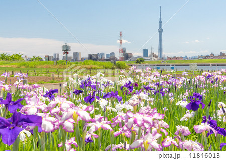 堀切水辺公園 花菖蒲とスカイツリー