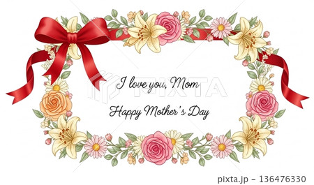 リボンと花の装飾フレーム母の日カード