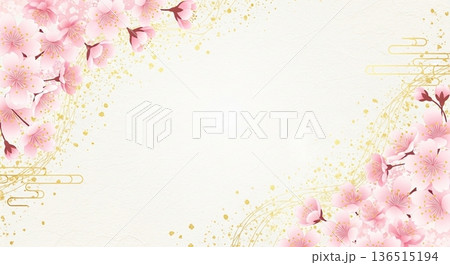 金箔と桜の和風背景テンプレート素材