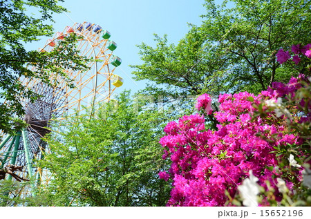 満開のつつじと観覧車 伊勢崎華蔵寺公園
